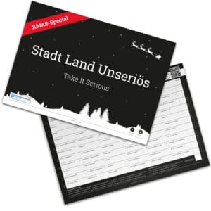 Stadt Land Unseriös XMAS-Special lässt sich hervorragend als Geschenk-Idee für Weihnachtsfeiern oder Nikolausgeschenke integrieren. Sprechen Sie uns an und nehmen Sie Kontakt auf.